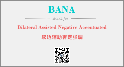 英文缩略词“BANA”经常作为“Bilateral Assisted Negative Accentuated”的英文缩写来使用,中文表示:“双边辅助否定强调”。本文将详细介绍英文缩写词BANA所代表英文单词,其对应的中文拼音、详细解释以及在英语中的流行度。此外,还有关于缩略词BANA的分类、应用领域及相关应用示例等。