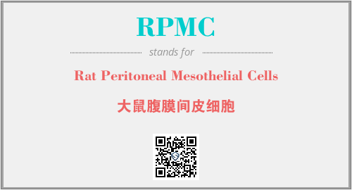 英文缩略词“RPMC”经常作为“Rat Peritoneal Mesothelial Cells”的英文缩写来使用,中文表示:“大鼠腹膜间皮细胞”。本文将详细介绍英文缩写词RPMC所代表英文单词,其对应的中文拼音、详细解释以及在英语中的流行度。此外,还有关于缩略词RPMC的分类、应用领域及相关应用示例等。