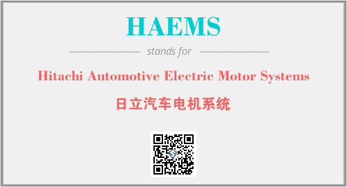 上述内容是“Hitachi Automotive Electric Motor Systems”作为“HAEMS”的缩写,解释为“日立汽车电机系统”时的信息,以及英文缩略词HAEMS所代表的英文单词,其对应的中文拼音、详细解释以及在英文中的流行度和相关分类、应用领域及应用示例等。