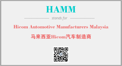 上述内容是“Hicom Automotive Manufacturers Malaysia”作为“HAMM”的缩写,解释为“马来西亚Hicom汽车制造商”时的信息,以及英文缩略词HAMM所代表的英文单词,其对应的中文拼音、详细解释以及在英文中的流行度和相关分类、应用领域及应用示例等。