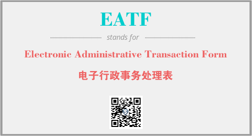 英文缩略词“EATF”经常作为“Electronic Administrative Transaction Form”的英文缩写来使用,中文表示:“电子行政事务处理表”。本文将详细介绍英文缩写词EATF所代表英文单词,其对应的中文拼音、详细解释以及在英语中的流行度。此外,还有关于缩略词EATF的分类、应用领域及相关应用示例等。