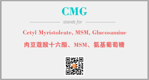 以上为Cetyl Myristoleate, MSM, Glucosamine英文缩略词CMG的中文解释,以及该英文缩写在英语的流行度、分类和应用领域方面的信息。