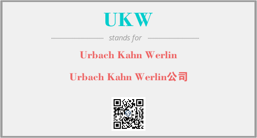 上述内容是“Urbach Kahn Werlin”作为“UKW”的缩写,解释为“Urbach Kahn Werlin公司”时的信息,以及英文缩略词UKW所代表的英文单词,其对应的中文拼音、详细解释以及在英文中的流行度和相关分类、应用领域及应用示例等。