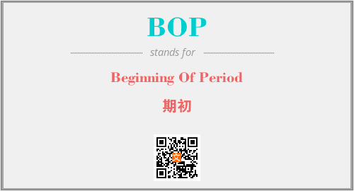 上述内容是“Beginning Of Period”作为“BOP”的缩写,解释为“期初”时的信息,以及英文缩略词BOP所代表的英文单词,其对应的中文拼音、详细解释以及在英文中的流行度和相关分类、应用领域及应用示例等。