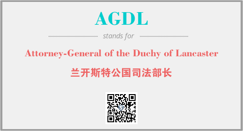 上述内容是“Attorney-General of the Duchy of Lancaster”作为“AGDL”的缩写,解释为“兰开斯特公国司法部长”时的信息,以及英文缩略词AGDL所代表的英文单词,其对应的中文拼音、详细解释以及在英文中的流行度和相关分类、应用领域及应用示例等。