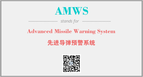 上述内容是“Advanced Missile Warning System”作为“AMWS”的缩写,解释为“先进导弹预警系统”时的信息,以及英文缩略词AMWS所代表的英文单词,其对应的中文拼音、详细解释以及在英文中的流行度和相关分类、应用领域及应用示例等。