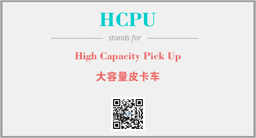 英文缩略词“HCPU”经常作为“High Capacity Pick Up”的英文缩写来使用,中文表示:“大容量皮卡车”。本文将详细介绍英文缩写词HCPU所代表英文单词,其对应的中文拼音、详细解释以及在英语中的流行度。此外,还有关于缩略词HCPU的分类、应用领域及相关应用示例等。