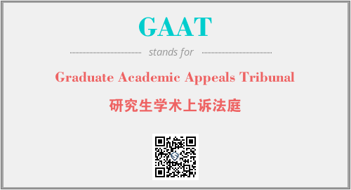 以上为Graduate Academic Appeals Tribunal英文缩略词GAAT的中文解释,以及该英文缩写在英语的流行度、分类和应用领域方面的信息。