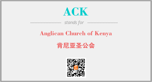 上述内容是“Anglican Church of Kenya”作为“ACK”的缩写,解释为“肯尼亚圣公会”时的信息,以及英文缩略词ACK所代表的英文单词,其对应的中文拼音、详细解释以及在英文中的流行度和相关分类、应用领域及应用示例等。