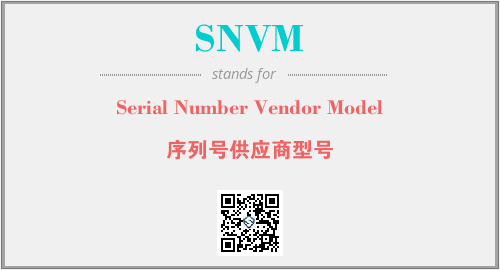 上述内容是“Serial Number Vendor Model”作为“SNVM”的缩写,解释为“序列号供应商型号”时的信息,以及英文缩略词SNVM所代表的英文单词,其对应的中文拼音、详细解释以及在英文中的流行度和相关分类、应用领域及应用示例等。