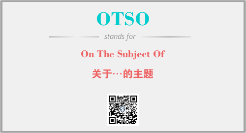 英文缩略词“OTSO”经常作为“On The Subject Of”的英文缩写来使用,中文表示:“关于…的主题”。本文将详细介绍英文缩写词OTSO所代表英文单词,其对应的中文拼音、详细解释以及在英语中的流行度。此外,还有关于缩略词OTSO的分类、应用领域及相关应用示例等。