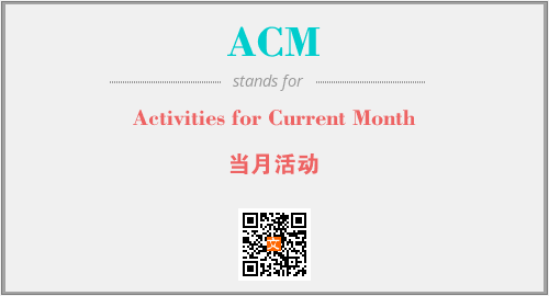 英文缩略词“ACM”经常作为“Activities for Current Month”的英文缩写来使用,中文表示:“当月活动”。本文将详细介绍英文缩写词ACM所代表英文单词,其对应的中文拼音、详细解释以及在英语中的流行度。此外,还有关于缩略词ACM的分类、应用领域及相关应用示例等。