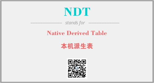 上述内容是“Native Derived Table”作为“NDT”的缩写,解释为“本机派生表”时的信息,以及英文缩略词NDT所代表的英文单词,其对应的中文拼音、详细解释以及在英文中的流行度和相关分类、应用领域及应用示例等。