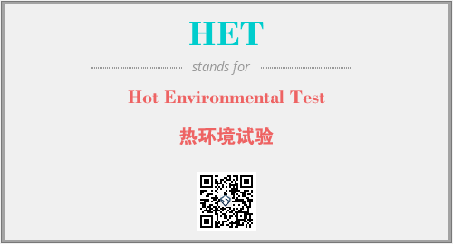 英文缩略词“HET”经常作为“Hot Environmental Test”的英文缩写来使用,中文表示:“热环境试验”。本文将详细介绍英文缩写词HET所代表英文单词,其对应的中文拼音、详细解释以及在英语中的流行度。此外,还有关于缩略词HET的分类、应用领域及相关应用示例等。