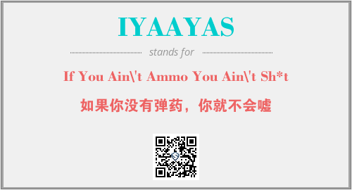 以上为If You Ain\'t Ammo You Ain\'t Sh*t英文缩略词IYAAYAS的中文解释,以及该英文缩写在英语的流行度、分类和应用领域方面的信息。