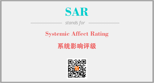 上述内容是“Systemic Affect Rating”作为“SAR”的缩写,解释为“系统影响评级”时的信息,以及英文缩略词SAR所代表的英文单词,其对应的中文拼音、详细解释以及在英文中的流行度和相关分类、应用领域及应用示例等。
