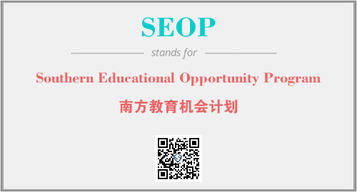 上述内容是“Southern Educational Opportunity Program”作为“SEOP”的缩写,解释为“南方教育机会计划”时的信息,以及英文缩略词SEOP所代表的英文单词,其对应的中文拼音、详细解释以及在英文中的流行度和相关分类、应用领域及应用示例等。