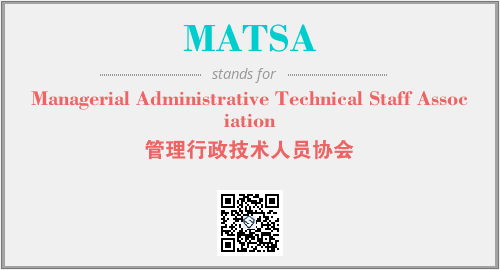 英文缩略词“MATSA”经常作为“Managerial Administrative Technical Staff Association”的英文缩写来使用,中文表示:“管理行政技术人员协会”。本文将详细介绍英文缩写词MATSA所代表英文单词,其对应的中文拼音、详细解释以及在英语中的流行度。此外,还有关于缩略词MATSA的分类、应用领域及相关应用示例等。
