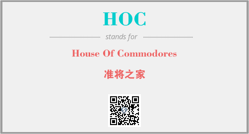 上述内容是“House Of Commodores”作为“HOC”的缩写,解释为“准将之家”时的信息,以及英文缩略词HOC所代表的英文单词,其对应的中文拼音、详细解释以及在英文中的流行度和相关分类、应用领域及应用示例等。