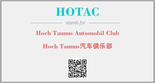 上述内容是“Hoch Taunus Automobil Club”作为“HOTAC”的缩写,解释为“Hoch Taunus汽车俱乐部”时的信息,以及英文缩略词HOTAC所代表的英文单词,其对应的中文拼音、详细解释以及在英文中的流行度和相关分类、应用领域及应用示例等。