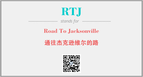 上述内容是“Road To Jacksonville”作为“RTJ”的缩写,解释为“通往杰克逊维尔的路”时的信息,以及英文缩略词RTJ所代表的英文单词,其对应的中文拼音、详细解释以及在英文中的流行度和相关分类、应用领域及应用示例等。