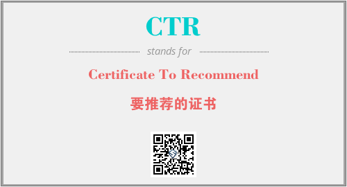 英文缩略词“CTR”经常作为“Certificate To Recommend”的英文缩写来使用,中文表示:“要推荐的证书”。本文将详细介绍英文缩写词CTR所代表英文单词,其对应的中文拼音、详细解释以及在英语中的流行度。此外,还有关于缩略词CTR的分类、应用领域及相关应用示例等。