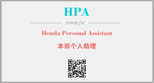 上述内容是“Honda Personal Assistant”作为“HPA”的缩写,解释为“本田个人助理”时的信息,以及英文缩略词HPA所代表的英文单词,其对应的中文拼音、详细解释以及在英文中的流行度和相关分类、应用领域及应用示例等。
