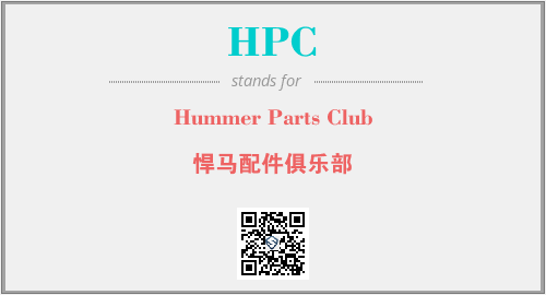 上述内容是“Hummer Parts Club”作为“HPC”的缩写,解释为“悍马配件俱乐部”时的信息,以及英文缩略词HPC所代表的英文单词,其对应的中文拼音、详细解释以及在英文中的流行度和相关分类、应用领域及应用示例等。