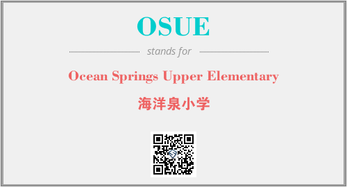 英文缩略词“OSUE”经常作为“Ocean Springs Upper Elementary”的英文缩写来使用,中文表示:“海洋泉小学”。本文将详细介绍英文缩写词OSUE所代表英文单词,其对应的中文拼音、详细解释以及在英语中的流行度。此外,还有关于缩略词OSUE的分类、应用领域及相关应用示例等。