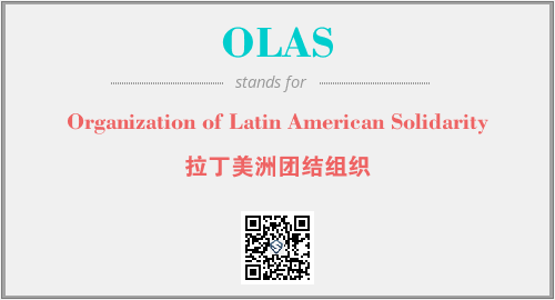 上述内容是“Organization of Latin American Solidarity”作为“OLAS”的缩写,解释为“拉丁美洲团结组织”时的信息,以及英文缩略词OLAS所代表的英文单词,其对应的中文拼音、详细解释以及在英文中的流行度和相关分类、应用领域及应用示例等。
