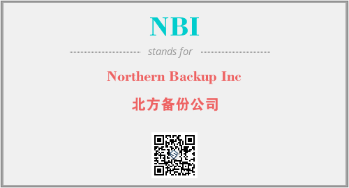 上述内容是“Northern Backup Inc”作为“NBI”的缩写,解释为“北方备份公司”时的信息,以及英文缩略词NBI所代表的英文单词,其对应的中文拼音、详细解释以及在英文中的流行度和相关分类、应用领域及应用示例等。