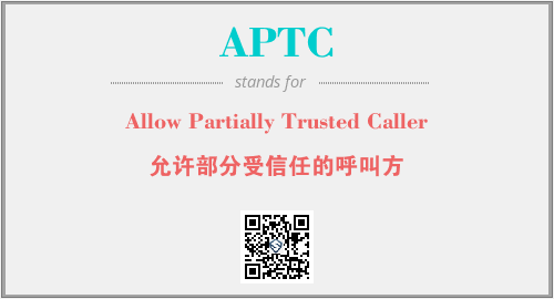 上述内容是“Allow Partially Trusted Caller”作为“APTC”的缩写,解释为“允许部分受信任的呼叫方”时的信息,以及英文缩略词APTC所代表的英文单词,其对应的中文拼音、详细解释以及在英文中的流行度和相关分类、应用领域及应用示例等。