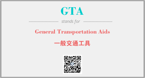 上述内容是“General Transportation Aids”作为“GTA”的缩写,解释为“一般交通工具”时的信息,以及英文缩略词GTA所代表的英文单词,其对应的中文拼音、详细解释以及在英文中的流行度和相关分类、应用领域及应用示例等。