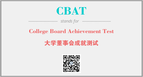 英文缩略词“CBAT”经常作为“College Board Achievement Test”的英文缩写来使用,中文表示:“大学董事会成就测试”。本文将详细介绍英文缩写词CBAT所代表英文单词,其对应的中文拼音、详细解释以及在英语中的流行度。此外,还有关于缩略词CBAT的分类、应用领域及相关应用示例等。