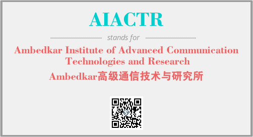 上述内容是“Ambedkar Institute of Advanced Communication Technologies and Research”作为“AIACTR”的缩写,解释为“Ambedkar高级通信技术与研究所”时的信息,以及英文缩略词AIACTR所代表的英文单词,其对应的中文拼音、详细解释以及在英文中的流行度和相关分类、应用领域及应用示例等。