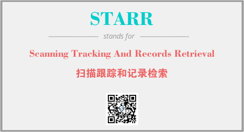 上述内容是“Scanning Tracking And Records Retrieval”作为“STARR”的缩写,解释为“扫描跟踪和记录检索”时的信息,以及英文缩略词STARR所代表的英文单词,其对应的中文拼音、详细解释以及在英文中的流行度和相关分类、应用领域及应用示例等。