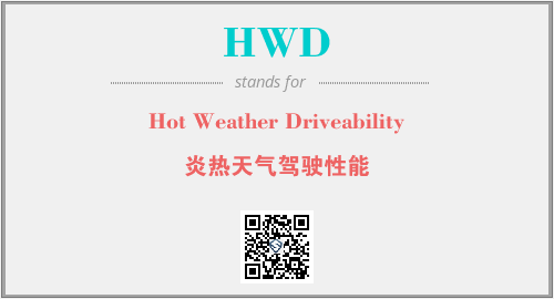 英文缩略词“HWD”经常作为“Hot Weather Driveability”的英文缩写来使用,中文表示:“炎热天气驾驶性能”。本文将详细介绍英文缩写词HWD所代表英文单词,其对应的中文拼音、详细解释以及在英语中的流行度。此外,还有关于缩略词HWD的分类、应用领域及相关应用示例等。