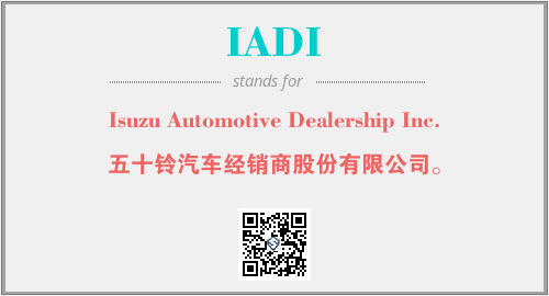 上述内容是“Isuzu Automotive Dealership Inc.”作为“IADI”的缩写,解释为“五十铃汽车经销商股份有限公司。”时的信息,以及英文缩略词IADI所代表的英文单词,其对应的中文拼音、详细解释以及在英文中的流行度和相关分类、应用领域及应用示例等。