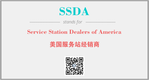 以上为Service Station Dealers of America英文缩略词SSDA的中文解释,以及该英文缩写在英语的流行度、分类和应用领域方面的信息。