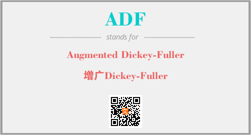 上述内容是“Augmented Dickey-Fuller”作为“ADF”的缩写,解释为“增广Dickey-Fuller”时的信息,以及英文缩略词ADF所代表的英文单词,其对应的中文拼音、详细解释以及在英文中的流行度和相关分类、应用领域及应用示例等。