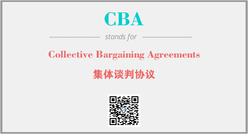 英文缩略词“CBA”经常作为“Collective Bargaining Agreements”的英文缩写来使用,中文表示:“集体谈判协议”。本文将详细介绍英文缩写词CBA所代表英文单词,其对应的中文拼音、详细解释以及在英语中的流行度。此外,还有关于缩略词CBA的分类、应用领域及相关应用示例等。