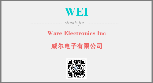 上述内容是“Ware Electronics Inc”作为“WEI”的缩写,解释为“威尔电子有限公司”时的信息,以及英文缩略词WEI所代表的英文单词,其对应的中文拼音、详细解释以及在英文中的流行度和相关分类、应用领域及应用示例等。