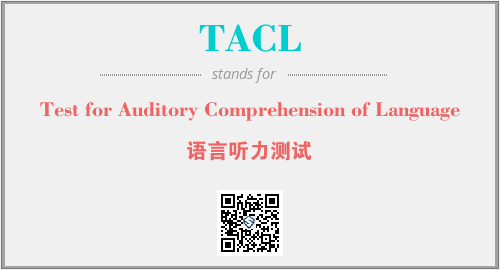 英文缩略词“TACL”经常作为“Test for Auditory Comprehension of Language”的英文缩写来使用,中文表示:“语言听力测试”。本文将详细介绍英文缩写词TACL所代表英文单词,其对应的中文拼音、详细解释以及在英语中的流行度。此外,还有关于缩略词TACL的分类、应用领域及相关应用示例等。