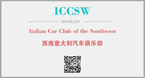 上述内容是“Italian Car Club of the Southwest”作为“ICCSW”的缩写,解释为“西南意大利汽车俱乐部”时的信息,以及英文缩略词ICCSW所代表的英文单词,其对应的中文拼音、详细解释以及在英文中的流行度和相关分类、应用领域及应用示例等。