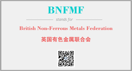 上述内容是“British Non-Ferrous Metals Federation”作为“BNFMF”的缩写,解释为“英国有色金属联合会”时的信息,以及英文缩略词BNFMF所代表的英文单词,其对应的中文拼音、详细解释以及在英文中的流行度和相关分类、应用领域及应用示例等。