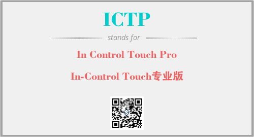 英文缩略词“ICTP”经常作为“In Control Touch Pro”的英文缩写来使用,中文表示:“In-Control Touch专业版”。本文将详细介绍英文缩写词ICTP所代表英文单词,其对应的中文拼音、详细解释以及在英语中的流行度。此外,还有关于缩略词ICTP的分类、应用领域及相关应用示例等。