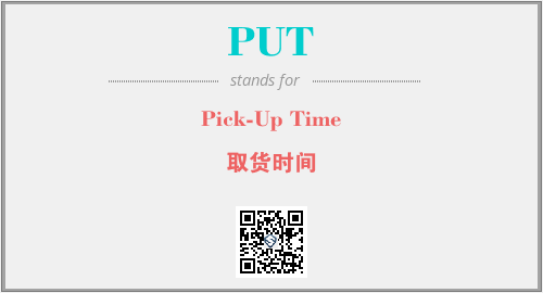 英文缩略词“PUT”经常作为“Pick-Up Time”的英文缩写来使用,中文表示:“取货时间”。本文将详细介绍英文缩写词PUT所代表英文单词,其对应的中文拼音、详细解释以及在英语中的流行度。此外,还有关于缩略词PUT的分类、应用领域及相关应用示例等。