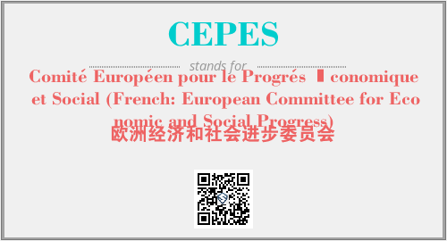 上述内容是“Comité Européen pour le Progrés Économique et Social (French: European Committee for Economic and Social Progress)”作为“CEPES”的缩写,解释为“欧洲经济和社会进步委员会”时的信息,以及英文缩略词CEPES所代表的英文单词,其对应的中文拼音、详细解释以及在英文中的流行度和相关分类、应用领域及应用示例等。