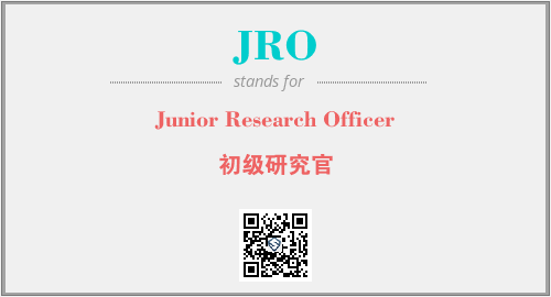 上述内容是“Junior Research Officer”作为“JRO”的缩写,解释为“初级研究官”时的信息,以及英文缩略词JRO所代表的英文单词,其对应的中文拼音、详细解释以及在英文中的流行度和相关分类、应用领域及应用示例等。