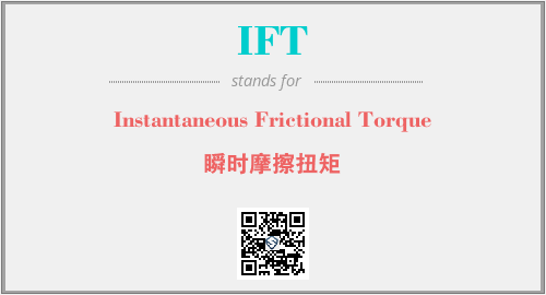 上述内容是“Instantaneous Frictional Torque”作为“IFT”的缩写,解释为“瞬时摩擦扭矩”时的信息,以及英文缩略词IFT所代表的英文单词,其对应的中文拼音、详细解释以及在英文中的流行度和相关分类、应用领域及应用示例等。